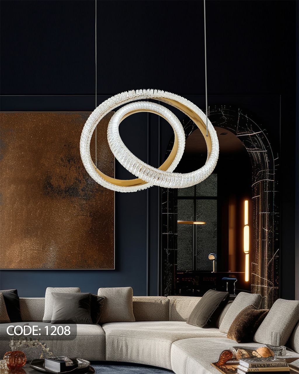 لوستر مدل 1208 یک انتخاب عالی برای ایجاد یک نقطه کانونی جذاب و هنری است. طراحی حلقههای متقاطع آن، بازی زیبایی از نور و سایه را در فضا ایجاد میکند و به آن حس پویایی میبخشد. این لوستر برای فضاهایی که نیاز به یک عنصر دکوراتیو قدرتمند دارند، مانند بالای میز ناهارخوری گرد یا در مرکز یک نشیمن مدرن، بسیار مناسب است.