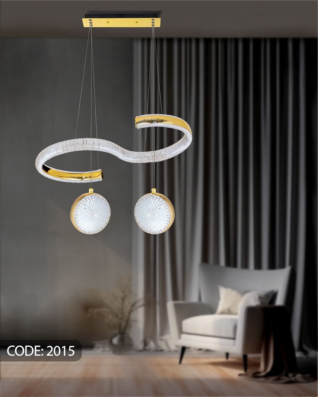 لوستر آویز مدرن سه حالته کد 2015 به زیبایی و جذابیت فضای داخلی کمک میکند. این لوستر میتواند به عنوان یک نقطه کانونی در هر اتاق عمل کند و به دکوراسیون شما جلوهای خاص ببخشد.
